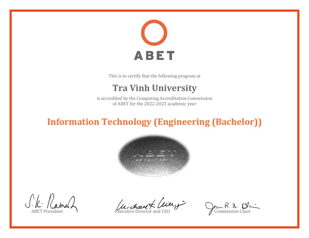 Ngành Công nghệ thông tin, Công nghệ Kỹ thuật Cơ khí, Công nghệ Kỹ thuật Điện – Điện tử đạt tiêu chuẩn ABET của Hoa Kỳ.
