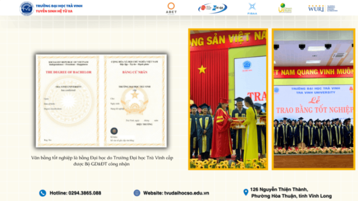 Văn bằng tốt nghiệp và lễ tốt nghiệp tại Trường Đại học Trà Vinh. Date 29/08/2025 admin You may also like Đại học cho người lớn tuổi – chương trình đào tạo từ xa mở lối tri thức mới 12 Tháng 10, 2025 Trường Đại học Trà Vinh – 16 năm tiên phong và phát triển hệ đại học từ 28 Tháng 9, 2025 Văn bằng 2 hệ từ xa có giá trị không? 26 Tháng 9, 2025